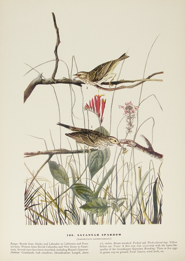 John James Audubon (April 26, 1785 – January 27, 1851) was an ornithologist, artist, naturalist, adventurer, and story teller. Born in San Domingue (now Haiti), Audubon began studying birds, nature, and art after moving to France at the age of five. His studies continued near Philadelphia, when he was sent to a family estate at eighteen. While there, Audubon is said to have conducted the first bird-banding experiment, tying strings to the legs of birds to determine whether they return to the same nesting sites each year. He spent the early 1820s drawing birds in Mississippi, Alabama, Florida, and Louisiana before taking his Birds of America portfolio containing over 400 life-size drawings to England and Scotland for printing. His work was very well received, even gaining a subscriber in King George IV. Audubon’s work was highly praised since it was more natural than previous artists’ renditions. He continued drawing new species for the rest of his life, but later volumes were mostly completed by his sons. As one of the forefathers of the modern conservation and environmentalist movements, many organizations and places bear Audubon’s name. His works are housed in such collections as the National Gallery of Art, Washington, D.C.; the Harvard Library; and the Library of Congress.