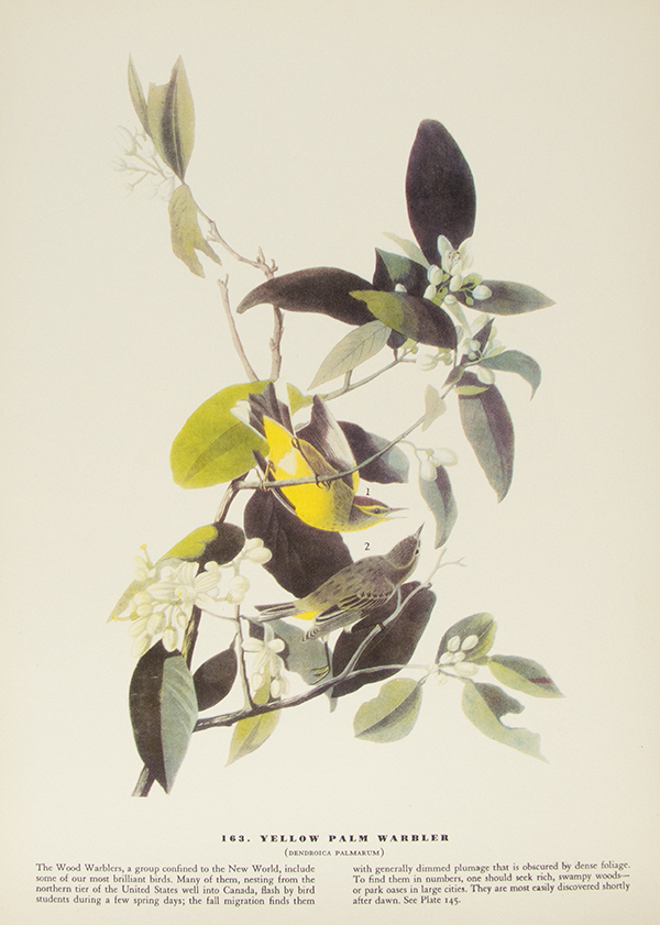 John James Audubon (April 26, 1785 – January 27, 1851) was an ornithologist, artist, naturalist, adventurer, and story teller. Born in San Domingue (now Haiti), Audubon began studying birds, nature, and art after moving to France at the age of five. His studies continued near Philadelphia, when he was sent to a family estate at eighteen. While there, Audubon is said to have conducted the first bird-banding experiment, tying strings to the legs of birds to determine whether they return to the same nesting sites each year. He spent the early 1820s drawing birds in Mississippi, Alabama, Florida, and Louisiana before taking his Birds of America portfolio containing over 400 life-size drawings to England and Scotland for printing. His work was very well received, even gaining a subscriber in King George IV. Audubon’s work was highly praised since it was more natural than previous artists’ renditions. He continued drawing new species for the rest of his life, but later volumes were mostly completed by his sons. As one of the forefathers of the modern conservation and environmentalist movements, many organizations and places bear Audubon’s name. His works are housed in such collections as the National Gallery of Art, Washington, D.C.; the Harvard Library; and the Library of Congress.