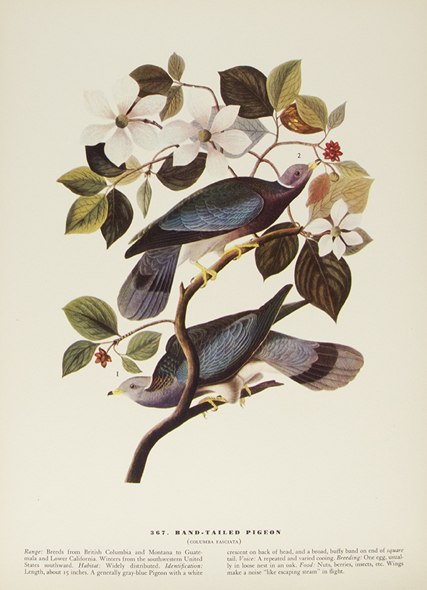 John James Audubon (April 26, 1785 – January 27, 1851) was an ornithologist, artist, naturalist, adventurer, and story teller. Born in San Domingue (now Haiti), Audubon began studying birds, nature, and art after moving to France at the age of five. His studies continued near Philadelphia, when he was sent to a family estate at eighteen. While there, Audubon is said to have conducted the first bird-banding experiment, tying strings to the legs of birds to determine whether they return to the same nesting sites each year. He spent the early 1820s drawing birds in Mississippi, Alabama, Florida, and Louisiana before taking his Birds of America portfolio containing over 400 life-size drawings to England and Scotland for printing. His work was very well received, even gaining a subscriber in King George IV. Audubon’s work was highly praised since it was more natural than previous artists’ renditions. He continued drawing new species for the rest of his life, but later volumes were mostly completed by his sons. As one of the forefathers of the modern conservation and environmentalist movements, many organizations and places bear Audubon’s name. His works are housed in such collections as the National Gallery of Art, Washington, D.C.; the Harvard Library; and the Library of Congress.