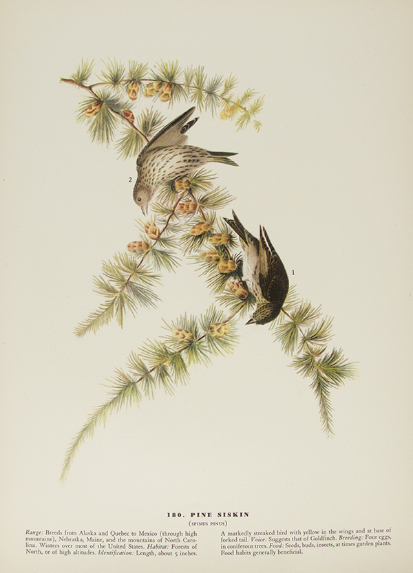 John James Audubon (April 26, 1785 – January 27, 1851) was an ornithologist, artist, naturalist, adventurer, and story teller. Born in San Domingue (now Haiti), Audubon began studying birds, nature, and art after moving to France at the age of five. His studies continued near Philadelphia, when he was sent to a family estate at eighteen. While there, Audubon is said to have conducted the first bird-banding experiment, tying strings to the legs of birds to determine whether they return to the same nesting sites each year. He spent the early 1820s drawing birds in Mississippi, Alabama, Florida, and Louisiana before taking his Birds of America portfolio containing over 400 life-size drawings to England and Scotland for printing. His work was very well received, even gaining a subscriber in King George IV. Audubon’s work was highly praised since it was more natural than previous artists’ renditions. He continued drawing new species for the rest of his life, but later volumes were mostly completed by his sons. As one of the forefathers of the modern conservation and environmentalist movements, many organizations and places bear Audubon’s name. His works are housed in such collections as the National Gallery of Art, Washington, D.C.; the Harvard Library; and the Library of Congress.
