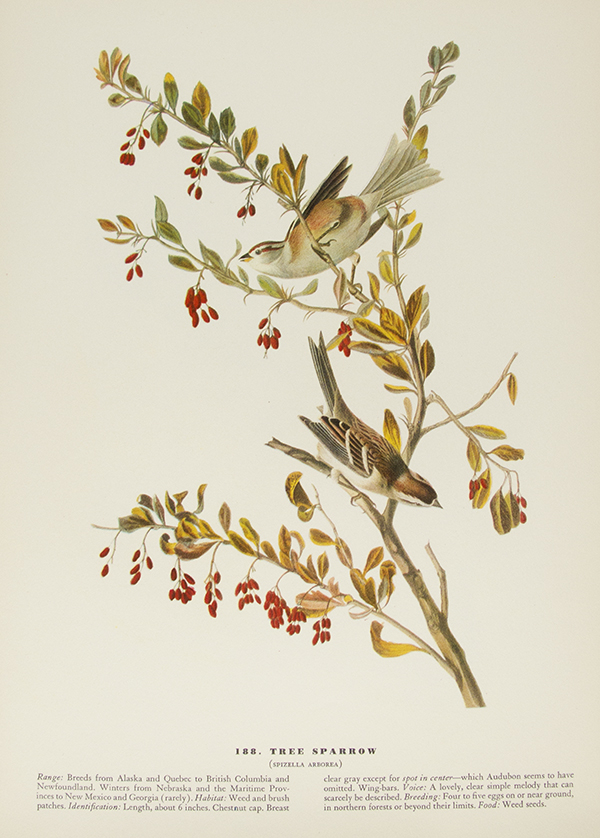 John James Audubon (April 26, 1785 – January 27, 1851) was an ornithologist, artist, naturalist, adventurer, and story teller. Born in San Domingue (now Haiti), Audubon began studying birds, nature, and art after moving to France at the age of five. His studies continued near Philadelphia, when he was sent to a family estate at eighteen. While there, Audubon is said to have conducted the first bird-banding experiment, tying strings to the legs of birds to determine whether they return to the same nesting sites each year. He spent the early 1820s drawing birds in Mississippi, Alabama, Florida, and Louisiana before taking his Birds of America portfolio containing over 400 life-size drawings to England and Scotland for printing. His work was very well received, even gaining a subscriber in King George IV. Audubon’s work was highly praised since it was more natural than previous artists’ renditions. He continued drawing new species for the rest of his life, but later volumes were mostly completed by his sons. As one of the forefathers of the modern conservation and environmentalist movements, many organizations and places bear Audubon’s name. His works are housed in such collections as the National Gallery of Art, Washington, D.C.; the Harvard Library; and the Library of Congress.