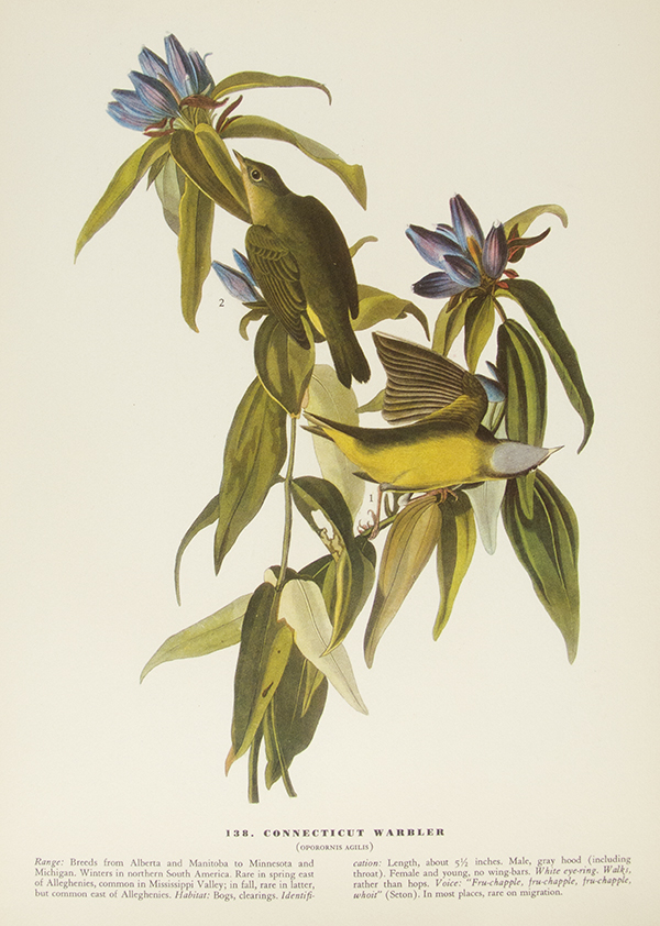 John James Audubon (April 26, 1785 – January 27, 1851) was an ornithologist, artist, naturalist, adventurer, and story teller. Born in San Domingue (now Haiti), Audubon began studying birds, nature, and art after moving to France at the age of five. His studies continued near Philadelphia, when he was sent to a family estate at eighteen. While there, Audubon is said to have conducted the first bird-banding experiment, tying strings to the legs of birds to determine whether they return to the same nesting sites each year. He spent the early 1820s drawing birds in Mississippi, Alabama, Florida, and Louisiana before taking his Birds of America portfolio containing over 400 life-size drawings to England and Scotland for printing. His work was very well received, even gaining a subscriber in King George IV. Audubon’s work was highly praised since it was more natural than previous artists’ renditions. He continued drawing new species for the rest of his life, but later volumes were mostly completed by his sons. As one of the forefathers of the modern conservation and environmentalist movements, many organizations and places bear Audubon’s name. His works are housed in such collections as the National Gallery of Art, Washington, D.C.; the Harvard Library; and the Library of Congress.