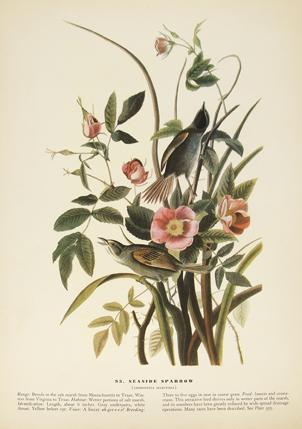 John James Audubon (April 26, 1785 – January 27, 1851) was an ornithologist, artist, naturalist, adventurer, and story teller. Born in San Domingue (now Haiti), Audubon began studying birds, nature, and art after moving to France at the age of five. His studies continued near Philadelphia, when he was sent to a family estate at eighteen. While there, Audubon is said to have conducted the first bird-banding experiment, tying strings to the legs of birds to determine whether they return to the same nesting sites each year. He spent the early 1820s drawing birds in Mississippi, Alabama, Florida, and Louisiana before taking his Birds of America portfolio containing over 400 life-size drawings to England and Scotland for printing. His work was very well received, even gaining a subscriber in King George IV. Audubon’s work was highly praised since it was more natural than previous artists’ renditions. He continued drawing new species for the rest of his life, but later volumes were mostly completed by his sons. As one of the forefathers of the modern conservation and environmentalist movements, many organizations and places bear Audubon’s name. His works are housed in such collections as the National Gallery of Art, Washington, D.C.; the Harvard Library; and the Library of Congress.