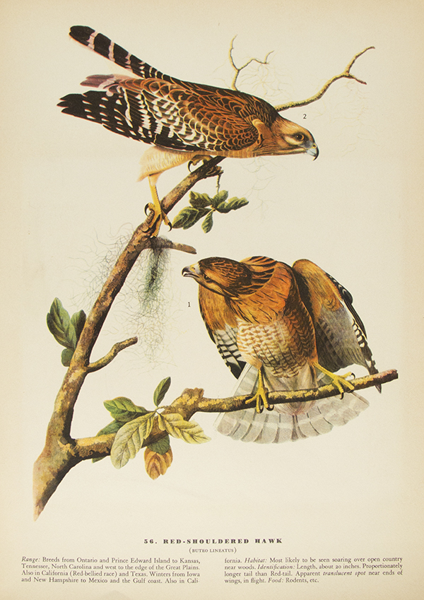 John James Audubon (April 26, 1785 – January 27, 1851) was an ornithologist, artist, naturalist, adventurer, and story teller. Born in San Domingue (now Haiti), Audubon began studying birds, nature, and art after moving to France at the age of five. His studies continued near Philadelphia, when he was sent to a family estate at eighteen. While there, Audubon is said to have conducted the first bird-banding experiment, tying strings to the legs of birds to determine whether they return to the same nesting sites each year. He spent the early 1820s drawing birds in Mississippi, Alabama, Florida, and Louisiana before taking his Birds of America portfolio containing over 400 life-size drawings to England and Scotland for printing. His work was very well received, even gaining a subscriber in King George IV. Audubon’s work was highly praised since it was more natural than previous artists’ renditions. He continued drawing new species for the rest of his life, but later volumes were mostly completed by his sons. As one of the forefathers of the modern conservation and environmentalist movements, many organizations and places bear Audubon’s name. His works are housed in such collections as the National Gallery of Art, Washington, D.C.; the Harvard Library; and the Library of Congress.