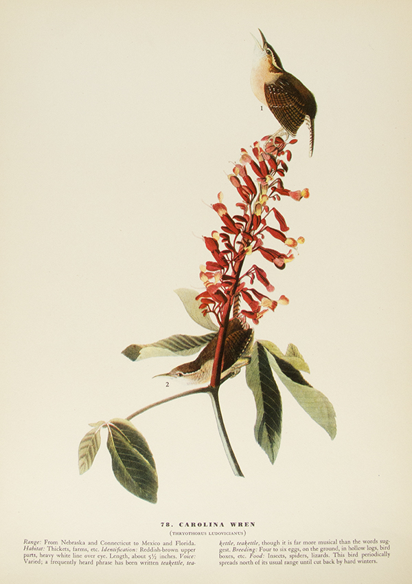 John James Audubon (April 26, 1785 – January 27, 1851) was an ornithologist, artist, naturalist, adventurer, and story teller. Born in San Domingue (now Haiti), Audubon began studying birds, nature, and art after moving to France at the age of five. His studies continued near Philadelphia, when he was sent to a family estate at eighteen. While there, Audubon is said to have conducted the first bird-banding experiment, tying strings to the legs of birds to determine whether they return to the same nesting sites each year. He spent the early 1820s drawing birds in Mississippi, Alabama, Florida, and Louisiana before taking his Birds of America portfolio containing over 400 life-size drawings to England and Scotland for printing. His work was very well received, even gaining a subscriber in King George IV. Audubon’s work was highly praised since it was more natural than previous artists’ renditions. He continued drawing new species for the rest of his life, but later volumes were mostly completed by his sons. As one of the forefathers of the modern conservation and environmentalist movements, many organizations and places bear Audubon’s name. His works are housed in such collections as the National Gallery of Art, Washington, D.C.; the Harvard Library; and the Library of Congress.