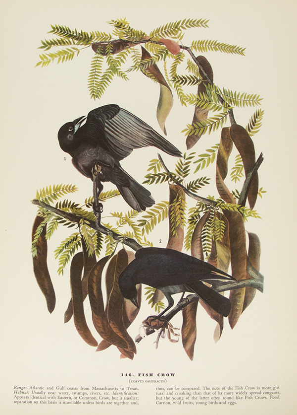 John James Audubon (April 26, 1785 – January 27, 1851) was an ornithologist, artist, naturalist, adventurer, and story teller. Born in San Domingue (now Haiti), Audubon began studying birds, nature, and art after moving to France at the age of five. His studies continued near Philadelphia, when he was sent to a family estate at eighteen. While there, Audubon is said to have conducted the first bird-banding experiment, tying strings to the legs of birds to determine whether they return to the same nesting sites each year. He spent the early 1820s drawing birds in Mississippi, Alabama, Florida, and Louisiana before taking his Birds of America portfolio containing over 400 life-size drawings to England and Scotland for printing. His work was very well received, even gaining a subscriber in King George IV. Audubon’s work was highly praised since it was more natural than previous artists’ renditions. He continued drawing new species for the rest of his life, but later volumes were mostly completed by his sons. As one of the forefathers of the modern conservation and environmentalist movements, many organizations and places bear Audubon’s name. His works are housed in such collections as the National Gallery of Art, Washington, D.C.; the Harvard Library; and the Library of Congress.