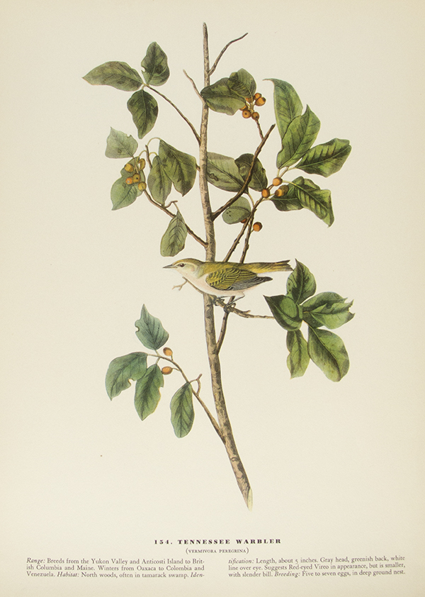 John James Audubon (April 26, 1785 – January 27, 1851) was an ornithologist, artist, naturalist, adventurer, and story teller. Born in San Domingue (now Haiti), Audubon began studying birds, nature, and art after moving to France at the age of five. His studies continued near Philadelphia, when he was sent to a family estate at eighteen. While there, Audubon is said to have conducted the first bird-banding experiment, tying strings to the legs of birds to determine whether they return to the same nesting sites each year. He spent the early 1820s drawing birds in Mississippi, Alabama, Florida, and Louisiana before taking his Birds of America portfolio containing over 400 life-size drawings to England and Scotland for printing. His work was very well received, even gaining a subscriber in King George IV. Audubon’s work was highly praised since it was more natural than previous artists’ renditions. He continued drawing new species for the rest of his life, but later volumes were mostly completed by his sons. As one of the forefathers of the modern conservation and environmentalist movements, many organizations and places bear Audubon’s name. His works are housed in such collections as the National Gallery of Art, Washington, D.C.; the Harvard Library; and the Library of Congress.