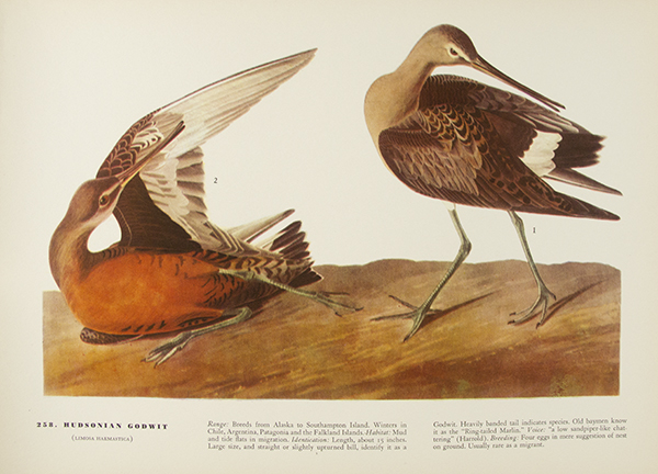 John James Audubon (April 26, 1785 – January 27, 1851) was an ornithologist, artist, naturalist, adventurer, and story teller. Born in San Domingue (now Haiti), Audubon began studying birds, nature, and art after moving to France at the age of five. His studies continued near Philadelphia, when he was sent to a family estate at eighteen. While there, Audubon is said to have conducted the first bird-banding experiment, tying strings to the legs of birds to determine whether they return to the same nesting sites each year. He spent the early 1820s drawing birds in Mississippi, Alabama, Florida, and Louisiana before taking his Birds of America portfolio containing over 400 life-size drawings to England and Scotland for printing. His work was very well received, even gaining a subscriber in King George IV. Audubon’s work was highly praised since it was more natural than previous artists’ renditions. He continued drawing new species for the rest of his life, but later volumes were mostly completed by his sons. As one of the forefathers of the modern conservation and environmentalist movements, many organizations and places bear Audubon’s name. His works are housed in such collections as the National Gallery of Art, Washington, D.C.; the Harvard Library; and the Library of Congress.