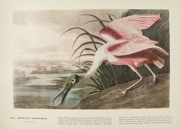 John James Audubon (April 26, 1785 – January 27, 1851) was an ornithologist, artist, naturalist, adventurer, and story teller. Born in San Domingue (now Haiti), Audubon began studying birds, nature, and art after moving to France at the age of five. His studies continued near Philadelphia, when he was sent to a family estate at eighteen. While there, Audubon is said to have conducted the first bird-banding experiment, tying strings to the legs of birds to determine whether they return to the same nesting sites each year. He spent the early 1820s drawing birds in Mississippi, Alabama, Florida, and Louisiana before taking his Birds of America portfolio containing over 400 life-size drawings to England and Scotland for printing. His work was very well received, even gaining a subscriber in King George IV. Audubon’s work was highly praised since it was more natural than previous artists’ renditions. He continued drawing new species for the rest of his life, but later volumes were mostly completed by his sons. As one of the forefathers of the modern conservation and environmentalist movements, many organizations and places bear Audubon’s name. His works are housed in such collections as the National Gallery of Art, Washington, D.C.; the Harvard Library; and the Library of Congress.