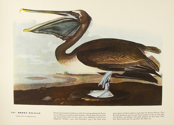 John James Audubon (April 26, 1785 – January 27, 1851) was an ornithologist, artist, naturalist, adventurer, and story teller. Born in San Domingue (now Haiti), Audubon began studying birds, nature, and art after moving to France at the age of five. His studies continued near Philadelphia, when he was sent to a family estate at eighteen. While there, Audubon is said to have conducted the first bird-banding experiment, tying strings to the legs of birds to determine whether they return to the same nesting sites each year. He spent the early 1820s drawing birds in Mississippi, Alabama, Florida, and Louisiana before taking his Birds of America portfolio containing over 400 life-size drawings to England and Scotland for printing. His work was very well received, even gaining a subscriber in King George IV. Audubon’s work was highly praised since it was more natural than previous artists’ renditions. He continued drawing new species for the rest of his life, but later volumes were mostly completed by his sons. As one of the forefathers of the modern conservation and environmentalist movements, many organizations and places bear Audubon’s name. His works are housed in such collections as the National Gallery of Art, Washington, D.C.; the Harvard Library; and the Library of Congress.