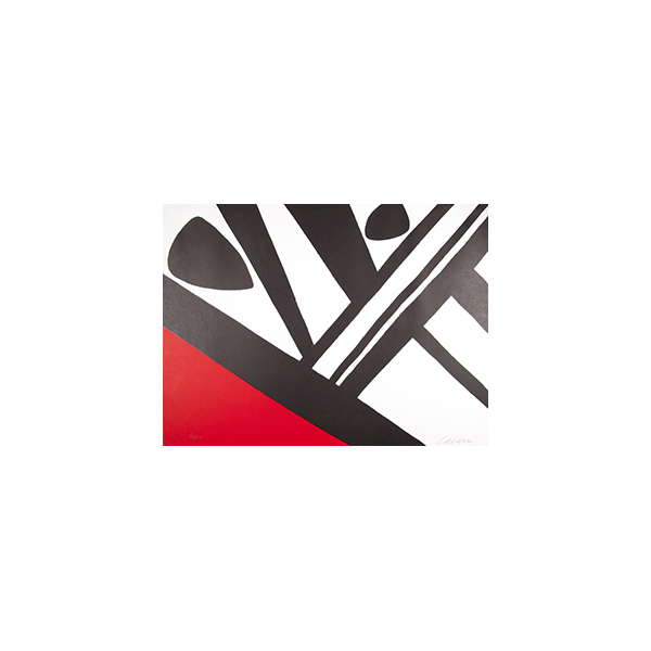 Alexander Calder (July 22, 1898 – November 11, 1976) was born in Philadelphia, Pennsylvania, to artist parents who gave him his own workshop at age eleven. Calder is best known for his wire sculptures and his invention of the mobile (kinetic sculptures moved by motors, touch, or air currents). His artwork also spans numerous mediums including jewelry, paintings, miniatures, and theatre costumes. Because of his interest in the movement of objects, Calder attended the Steven Institute of Technology in New Jersey, graduating in 1919 with an engineering degree. He then studied painting at the Art Students League in New York. While in New York, Calder worked as a sketch artist for the National Police Gazette, where he found a recurring motif in the Ringling Bros and Barnum and Bailey Circus. Calder moved to Paris in 1926 to continue his art studies, attending the Académie de la Grande Chaumière. While in Paris, Calder befriended important Abstract artists Joan Miró and Piet Mondrian. He also joined the group Abstraction-Création in 1931. Calder’s work is held in collections such as the Art Institute of Chicago and the Museum of Modern Art, New York.