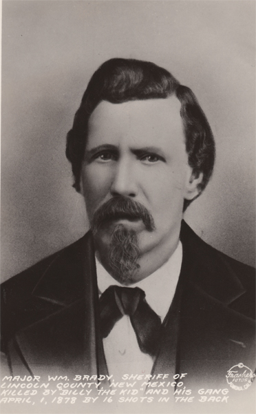 Postcard of Major W.M. Brady, sheriff of Lincoln County, New Mexico. Killed by Billy the Kid and his gang April 1, 1878 by 16 shots in the back.