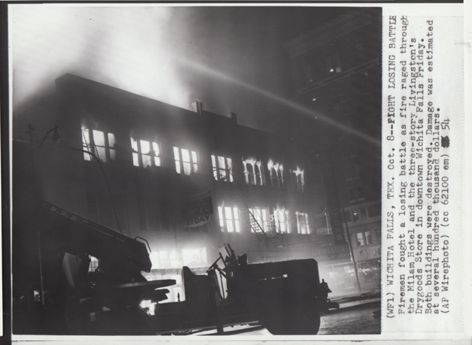 Milam Hotel fire, 623-625 8th, ladder truck pictured