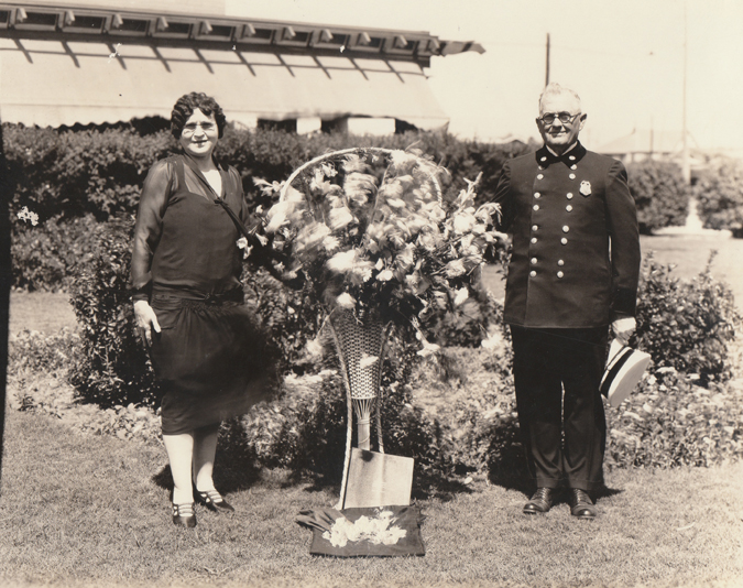 Buchanan St. Fire Station after banquet honoring fire chief for 20 years of service, with Mrs. J. L. McClure
