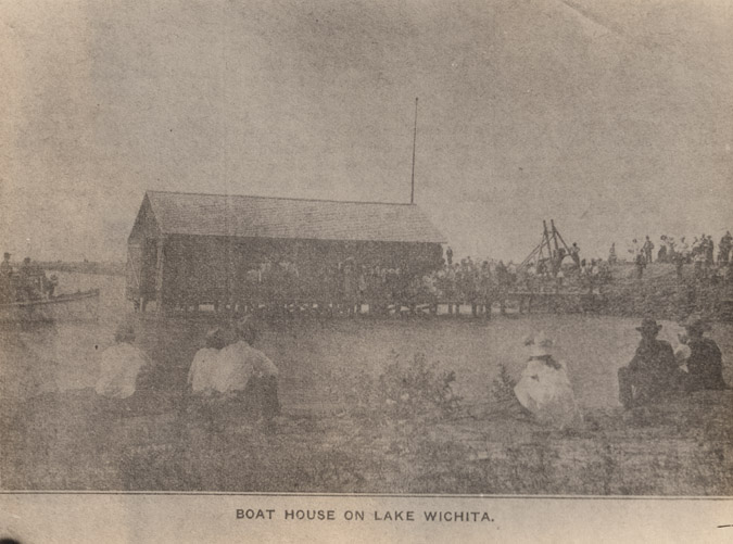Lake Wichita boat house with large crowd