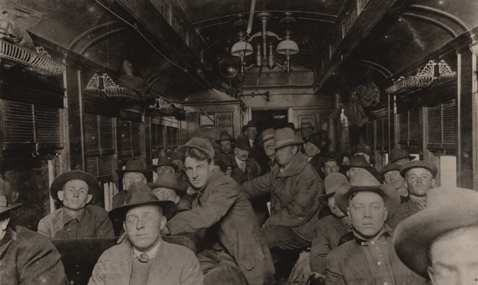 Interior of passenger coach on train between Wichita Falls and Burkburnett