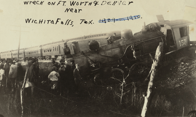 Rail road train wreck on Ft. Worth & Denver near Wichita Falls on December 2, 1909.