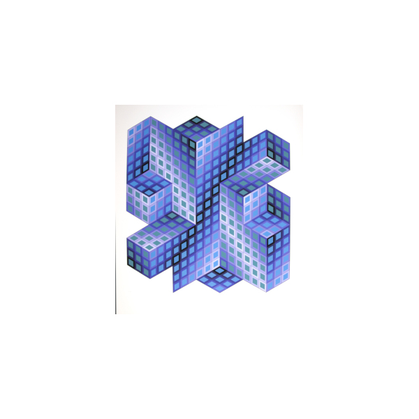 Victor Vasarely (April 9, 1906 – March 15, 1997) was a French-Hungarian artist known as the “grandfather” and leader of the Optical Art movement. Vasarely used geometric shapes and color graphics to create illusions of spatial depth. Born in Hungary, Vasarely briefly studied medicine for two years prior to attending the Muhely Academy, the center of the Bauhaus movement in Germany. He also studied traditional painting at the private Podolini-Volkmann Academy. In 1930, Vasarely settled in Paris, where he married fellow art student Claire Spinner. Throughout the 1940s, Vasarely experimented with style until he found his signature style in 1951, which was a combination of science and art. Vasarely’s artistic formula draws parallels with modern computer programming and computer art. Contributing to his legacy, Vasarely established and donated works to the Vasarely Museum in his hometown of Pécs, Hungary. Other museums have also been opened in his honor. Vasarely’s work is held in collections such as the Art Institute of Chicago, the Tate Gallery in London, and the Peggy Guggenheim Collection in Venice.