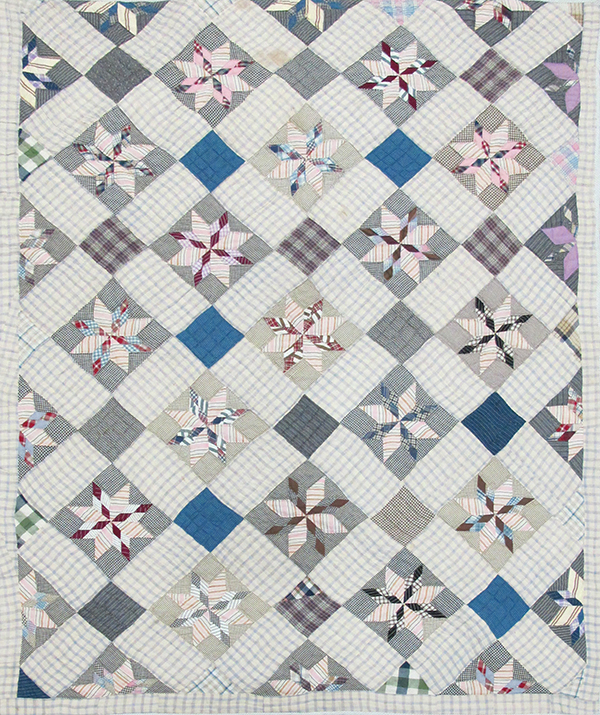 Design pattern called Lemoyne Star. Top pieced by Adaline Brazer Miles Harp, quilted by Louis Weber