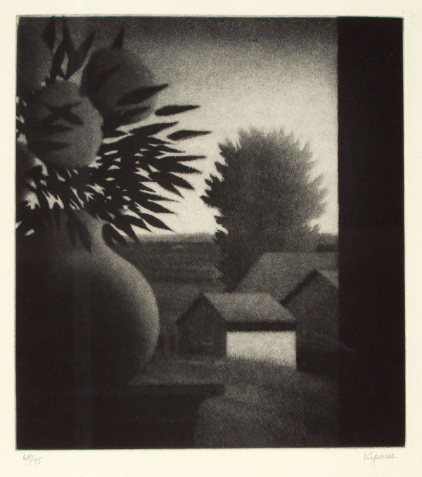 Robert Kipniss (February 1, 1931) is a painter and printmaker from New York whose work – usually lithographs and mezzotints – typically depicts trees, houses, and still lifes set against landscapes with a characteristic sense of solitude. Kipniss was born into an artistic family – both of his parents were commercial illustrators. At age sixteen, Kipniss began attending the New York’s Art Students League on Saturdays. In 1954, he earned his BA and his MFA in English literature from the University of Iowa. He was then drafted into the US army for two years, where he drew training aids. After his discharge, he painted during the day while working at the Manhattan General Post Office in the evenings until 1964. Kipniss has received commendations including two honorary doctorates and the Benjamin Clinedest Memorial Medal for lifetime achievement in art (2010). His work is held in collections such as the Art Students League in New York; the Carnegie Museum of Art, Pennsylvania; and the Museum of Fine Arts, Boston.