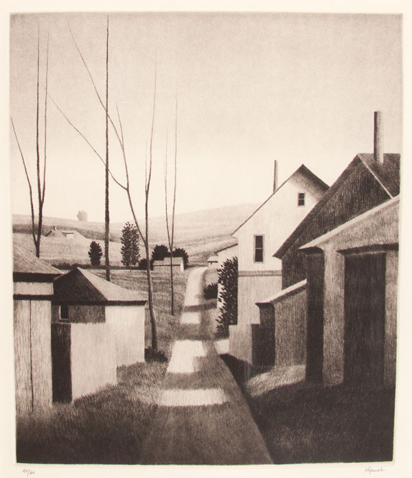 Robert Kipniss (1931) is a painter and printmaker from New York whose work – usually lithographs and mezzotints – typically depicts trees, houses, and still lifes set against landscapes with a characteristic sense of solitude. Kipniss was born into an artistic family – both of his parents were commercial illustrators. At age sixteen, Kipniss began attending the New York’s Art Students League on Saturdays. In 1954, he earned his BA and his MFA in English literature from the University of Iowa. He was then drafted into the US army for two years, where he drew training aids. After his discharge, he painted during the day while working at the Manhattan General Post Office in the evenings until 1964. Kipniss has received commendations including two honorary doctorates and the Benjamin Clinedest Memorial Medal for lifetime achievement in art (2010). His work is held in collections such as the Art Students League in New York; the Carnegie Museum of Art, Pennsylvania; and the Museum of Fine Arts, Boston.