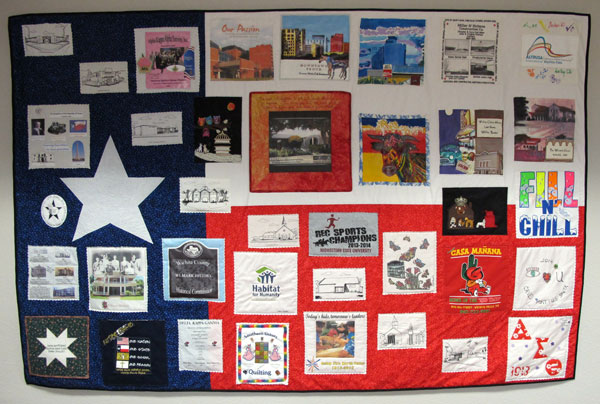 In conjunction with another quilting exhibition by Marion Coleman, the WFMA organized a community quilting project. Each participant created a 12" x 12" square and the Red River Quilting Guild then created four quilts from the squares. Each piece consists of different materials and techniques. A large square was also created by Marion Coleman on quilt 2015.0001.0001.