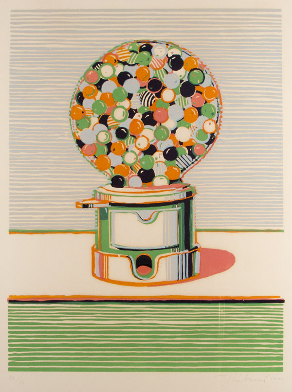 Wayne Thiebaud (November 15, 1920) is a painter from Mesa, Arizona, known for his colorful works depicting commonplace objects such as pies, lipsticks, and ice cream cones that are often incorrectly associated with the Pop Art movement. Prior to his formal art training, Thiebaud apprenticed at Walt Disney Studios drawing "in-betweens" of Goofy, Pinocchio, and Jiminy Cricket. He went on to work as a cartoonist and designer in California and New York from 1938-1949. In 1951 and 1952, Thiebaud earned his Bachelor’s and Master’s degrees in commercial art from Sacramento State College. While in New York during the late 1950s, Thiebaud befriended artists Elaine and Willem de Kooning and Franz Kline. From 1960-1991, Thiebaud served as assistant professor at the University of California in Davis, where he still holds a Professor Emeritus title. He has received commendations including induction into the California Hall of Fame and the National Medal of Arts in 1994. Thiebaud’s artwork is held in collections such as the Whitney Museum of American Art in New York, the San Francisco Museum of Modern Art, and the Smithsonian American Art Museum.