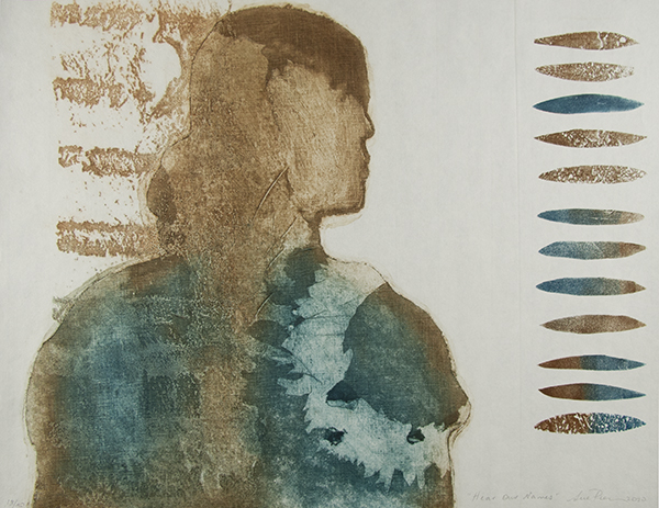 In January 2020 Norfolk Islanders held their first Heiva. In her opening speech, Gaye Evans of the Council of Elders honoured and dedicated the event to our Polynesian foremothers, the women who left their homes and families forever and traveled on the Bounty settling Pitcairn Island. Gaye named each of the 12 women who were founders of the Pitcairn and Norfolk Island people and spoke to their enormous contributions, strengths, and refined skills. This was the first Norfolk Island community event that I have witnessed dedicated to our ancestresses, their names pronounced correctly. With a history long observed, written, and presented through a Eurocentric male lens, these women had all but disappeared from view with their male counterparts, mutineers of the Bounty and the male leaders of the Pitcairn community receiving accolades and exclusive focus. This print is about the reappearing of our grandmothers in our communal identity and their names upon our tongues.