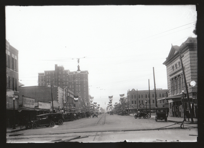Charles A. Fuhs was born in Portsmouth, Ohio, to parents who emigrated from Germany in the mid-1800s. Due to an acute bronchial disorder, Charles was unable to find work in the industrial city of Portsmouth and set out for Texas upon graduation, where he began a career as a traveling photographer. While he traveled widely, the boomtown spirit of Wichita Falls caught his attention most often. Fuhs captured the growth of the city and surrounding communities in time‐lapse sequence, ranging from the forest of oil derricks in Burkburnett to a transforming downtown full of parades. He photographed businesses and baptisms, boarding houses and back alleys. While these events helped document the events of the time, the soul of Fuhs’ photographs were in the faces of so many he captured. The rich and poor were equally treated and respected. In 1922 Charles gave up his photography business at age 45 to work in and later own Polk Street, Huff Street and Sunshine grocery stores, along with owning rental property. Fuhs passed away in 1963 from Alzheimer’s disease. His two children, Charles Jr. and JoAnn, donated 770 glass plate negatives along with prints and camera equipment to the Wichita Falls Museum and Art Center in 1980 and MSU in 2002. The C.A. Fuhs Collection, now reunited, currently resides at the Wichita Falls Museum of Art at MSU Texas as an admired view in to both Wichita Falls and North Texas history.