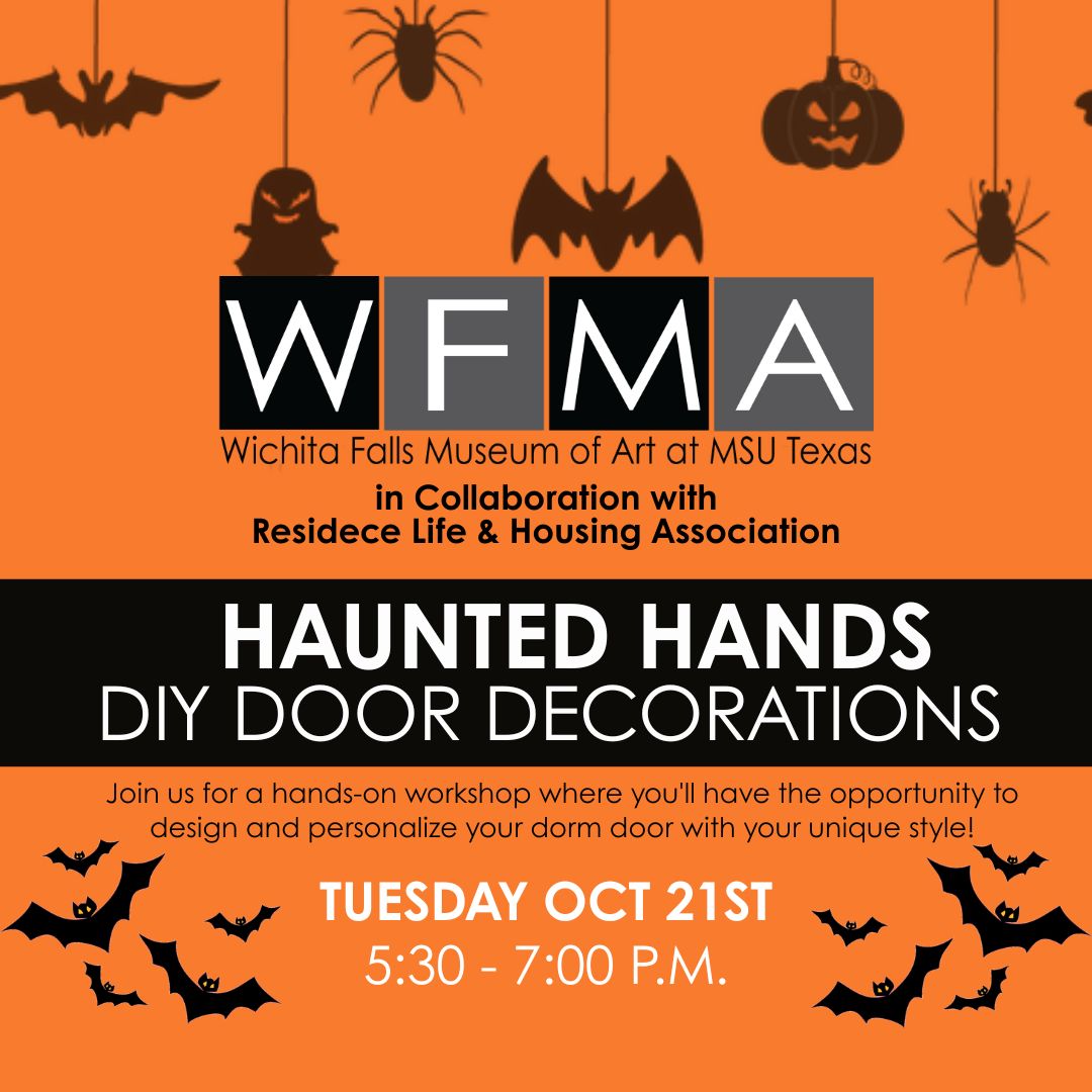 Need a decoration for your door to show your ghostly, haunted spirit for the Halloween holiday? We got you covered. Come to the museum to put your ideas together for a decoration that will either scare people away or invite them inside for Halloween fun.